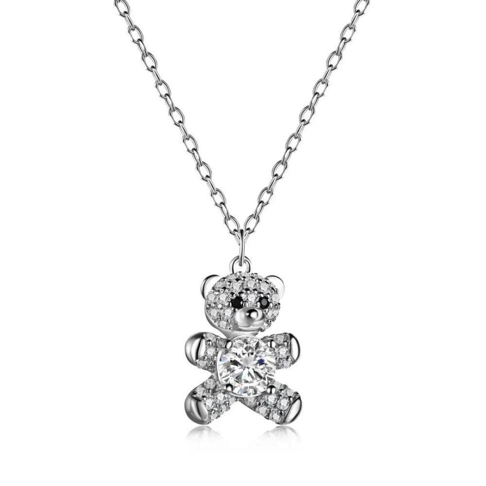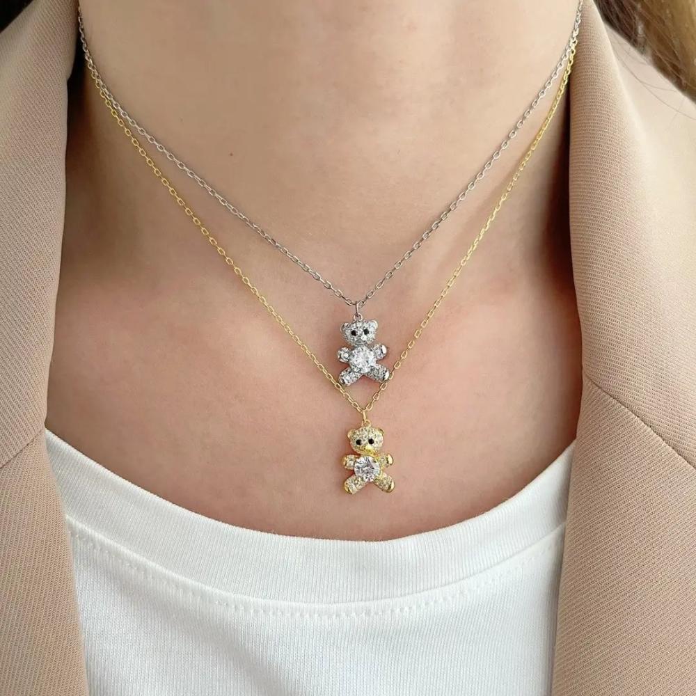 قلادة لابوبو الاكثر طلباًمثالية للإهداء بحيث تاتي بتصميم دب مرصع بالزركون يحمل زركون كبير بتصميم القلب تضيف لمسة ساحرة لمن تحبتتوفر باللون الفضي والذهبيالمعدن فضة 925