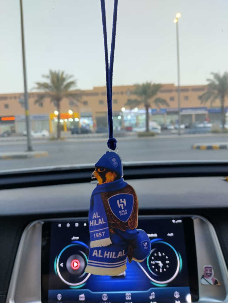 - تعليقة صقر مشجع بالزي الهلالي تضيف لمسة مميزة لسيارتك أو مكتبك.